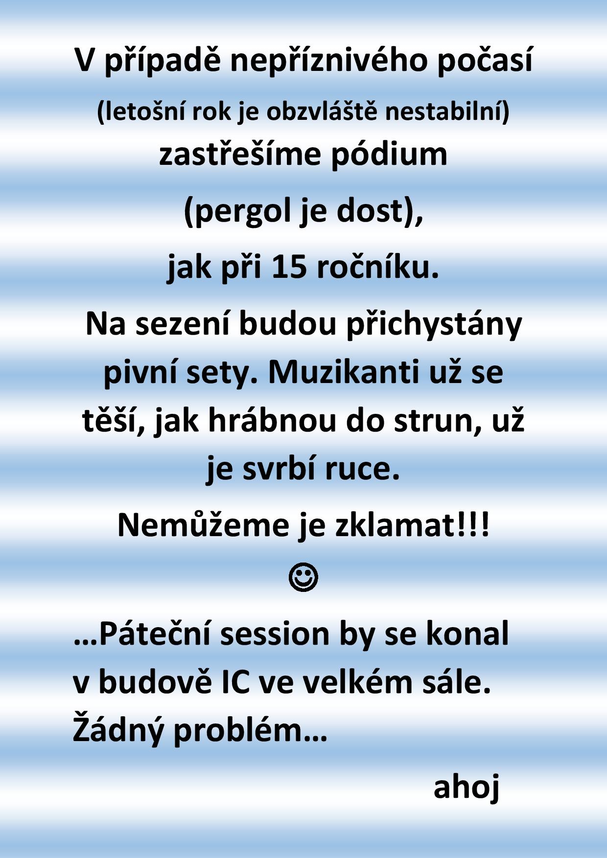 Pokud se Vám tento festival líbí a chtěli byste jej podpořit finančním darem, velice rádi Vás uvedeme na stránce festivalu mezi našimi partnery a také na dalších propagačních materiálech (plakáty a letáky), případně na místě konání festivalu. Zajistíme volné vstupenky a o vaší podpoře se určitě zmíníme i z pódia v přímém online přenosu.
